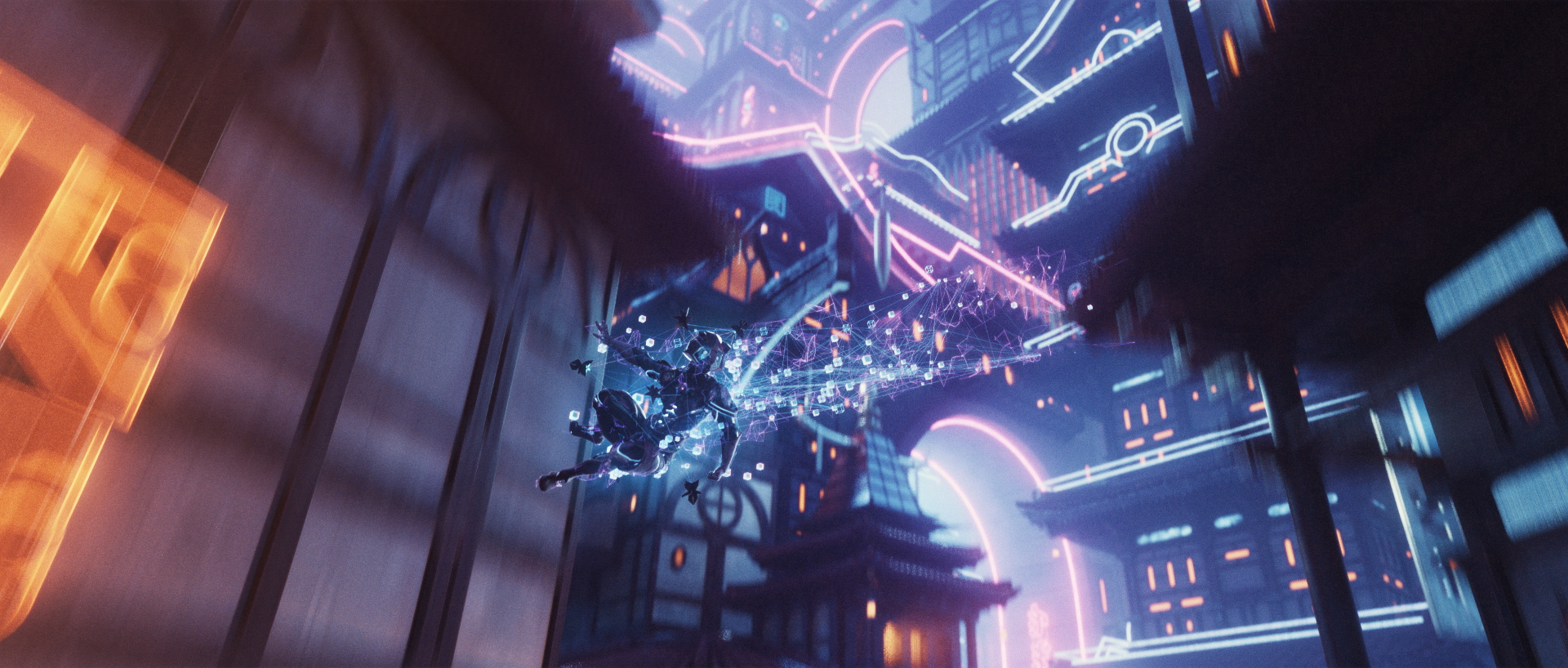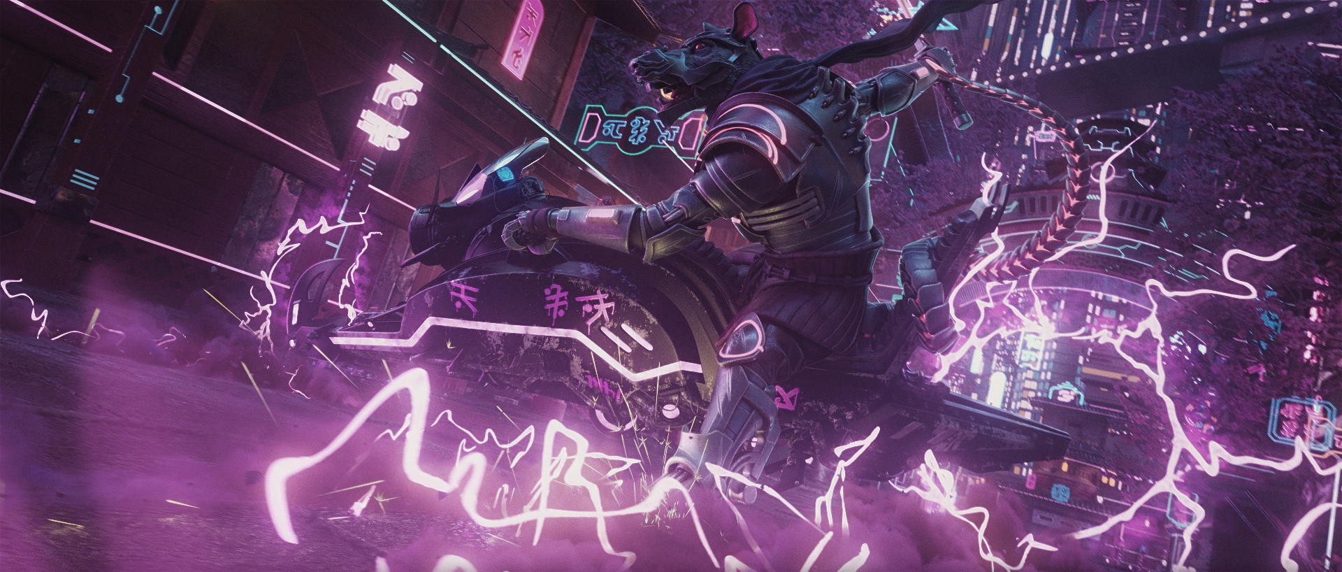 Our goal is to propel the spectator into the colorful futuristic world of Neon Dynasty with a graphic and dynamic motion design trailer that will introduce many aspects of this sci-fi universe that is totally new for Magic players.